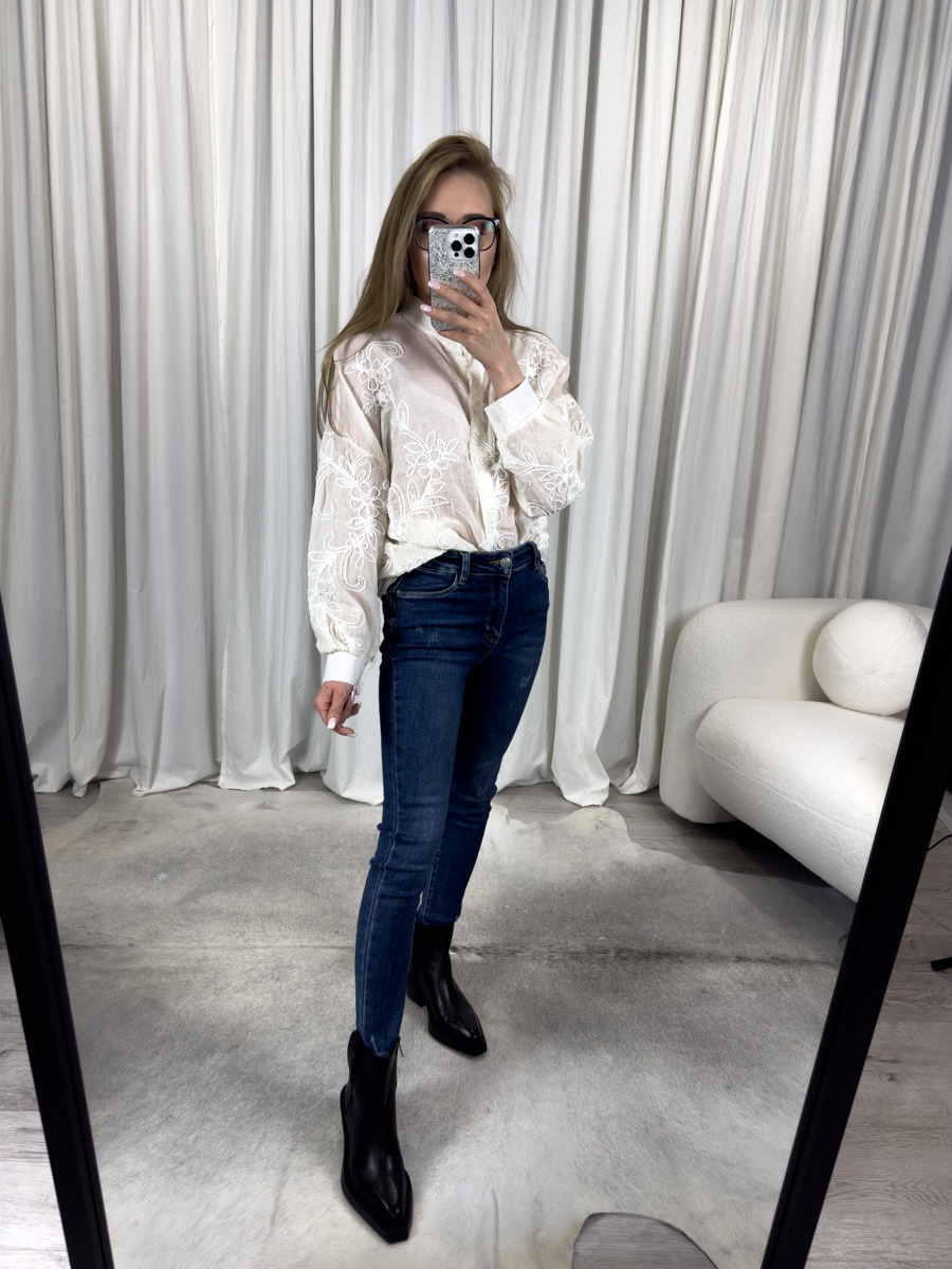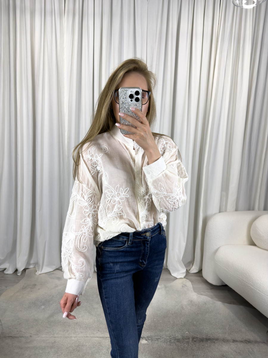 • Biała haftowana koszula z motywem róż