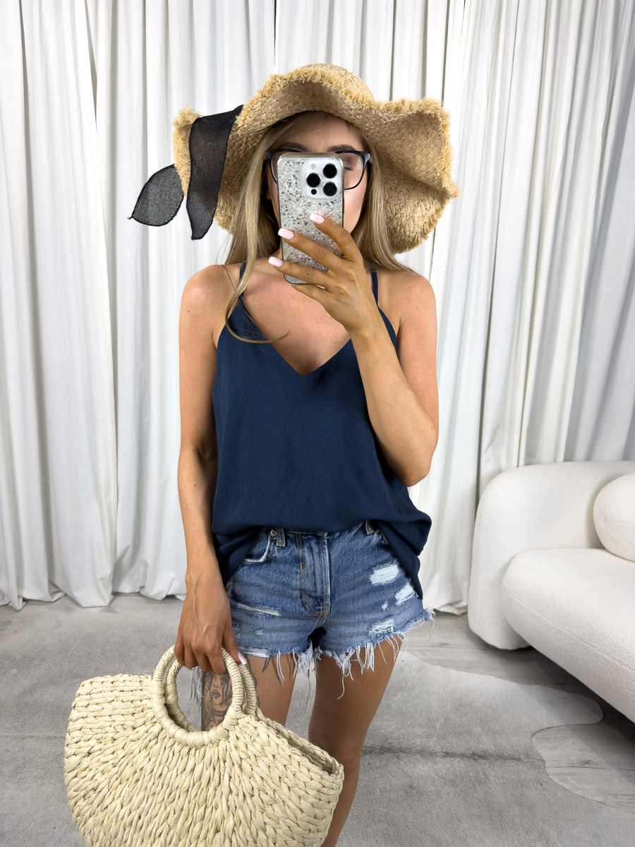 Top Vivi ma subtelną strukturę materiału, co dodaje mu charakteru. Wykończenie jest staranne, a krój lekko rozkloszowany. Dzięki temu model nie tylko dobrze wygląda, ale też jest bardzo wygodny. To idealna opcja na ciepłe dni – od wakacyjnego wyjazdu po lunch w mieście.