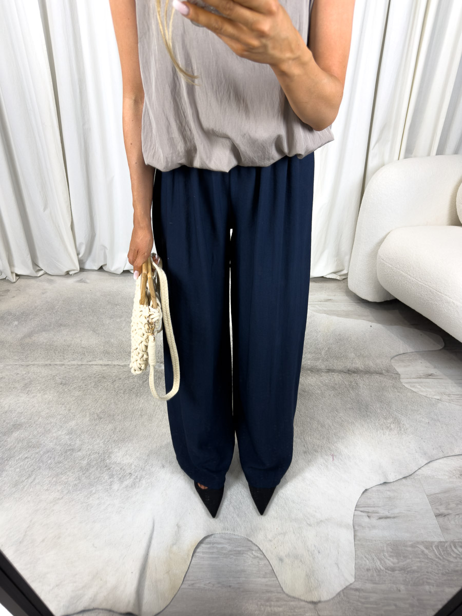 Model ten został zaprojektowany z myślą o gorących dniach – tkanina delikatnie układa się na sylwetce, nie przylega do ciała, a jednocześnie efektownie podkreśla kobiece proporcje. Wysoki stan optycznie wydłuża nogi i wysmukla sylwetkę, natomiast szerokie nogawki dodają całości lekkości i nonszalancji. To spodnie, które możesz nosić od rana do wieczora – do pracy, na spacer, na kolację przy zachodzie słońca.