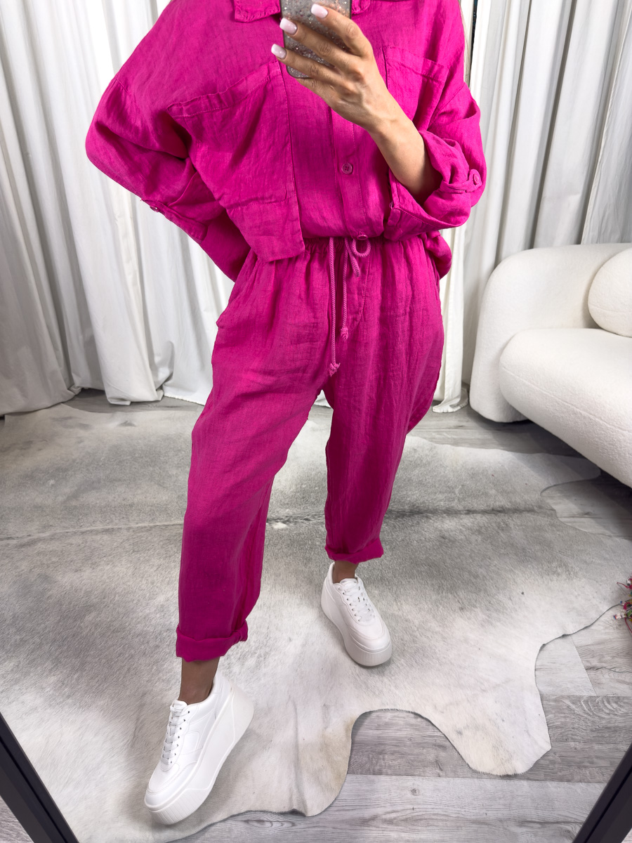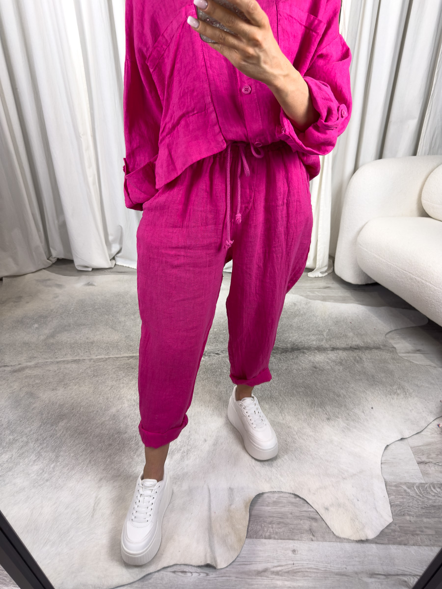 Lniane spodnie Wiya fuksja – intensywny kolor i komfort na co dzień