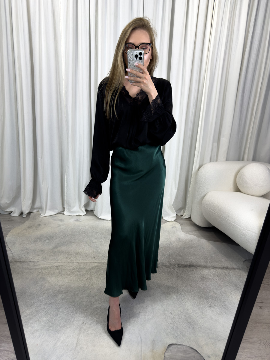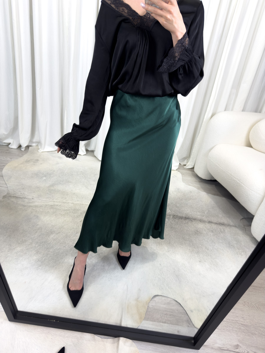 Spódnica Satine Ocean to model maxi z satyny w odcieniu głębokiej zieleni. Elegancka i wygodna – idealna do wielu stylizacji.