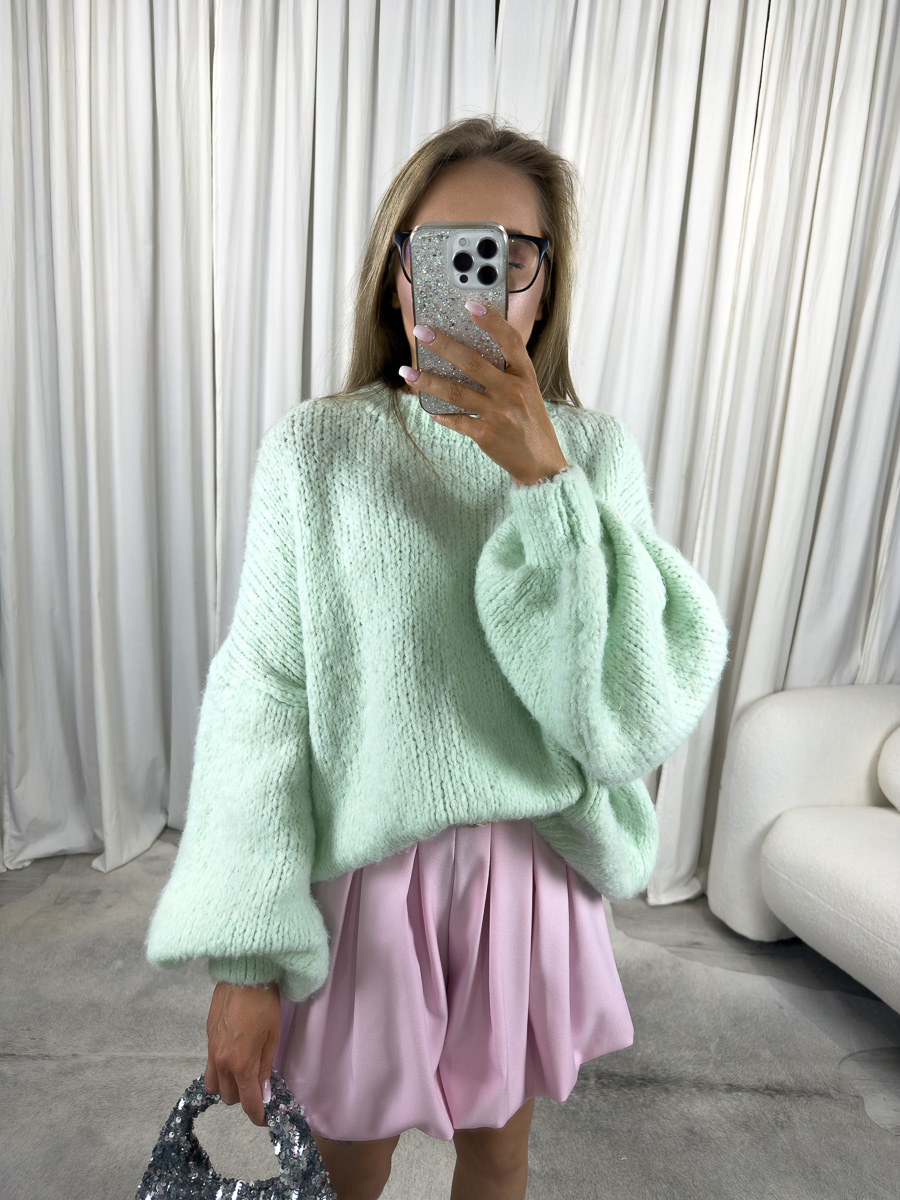 Sweter Balloon Mint – pastelowa klasyka w modnym kroju