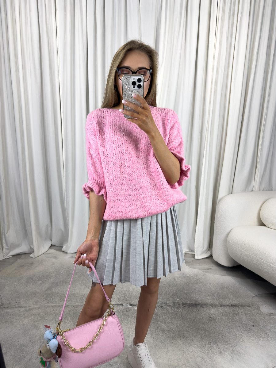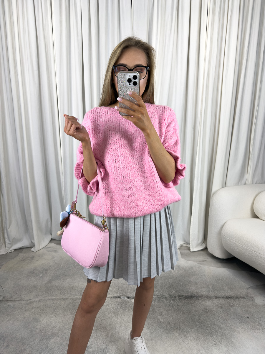 Nie musisz wybierać między komfortem a modą – Sweter pastelowy Flounce oferuje jedno i drugie. Dzięki lekko obniżonej linii ramion i szerokim rękawom z ozdobnym wykończeniem, wygląda niezwykle kobieco i swobodnie. Wysoka jakość dzianiny sprawia, że sweter jest przyjemny w dotyku, miękki i ciepły, ale jednocześnie przewiewny – idealny na przejściowe sezony. Różowy sweter damski to także świetna opcja na chłodniejsze letnie wieczory czy jako warstwa pod kurtkę w sezonie jesienno-zimowym.