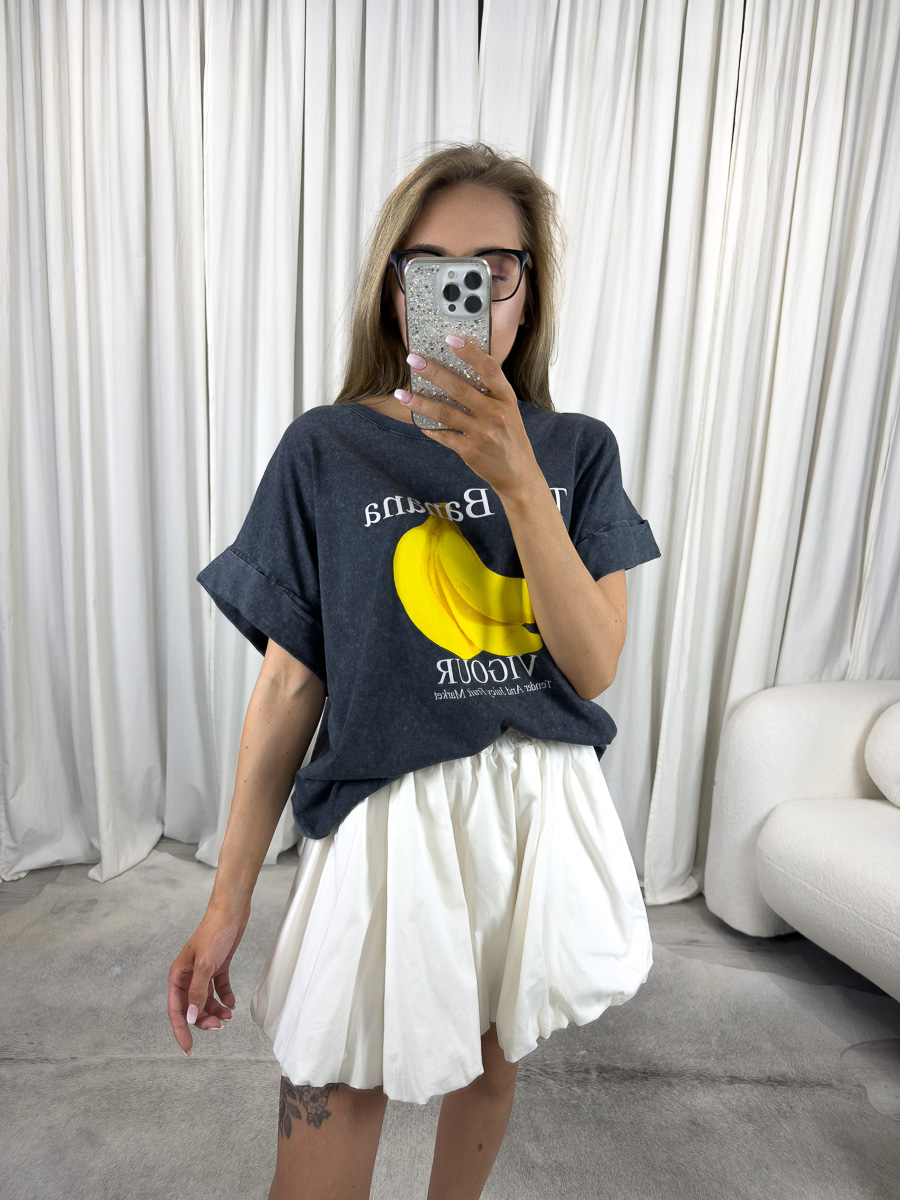 T-shirt z nadrukiem Banana to luźna koszulka damska w stylu streetwear z motywem banana. Komfort i oryginalny design w jednym.