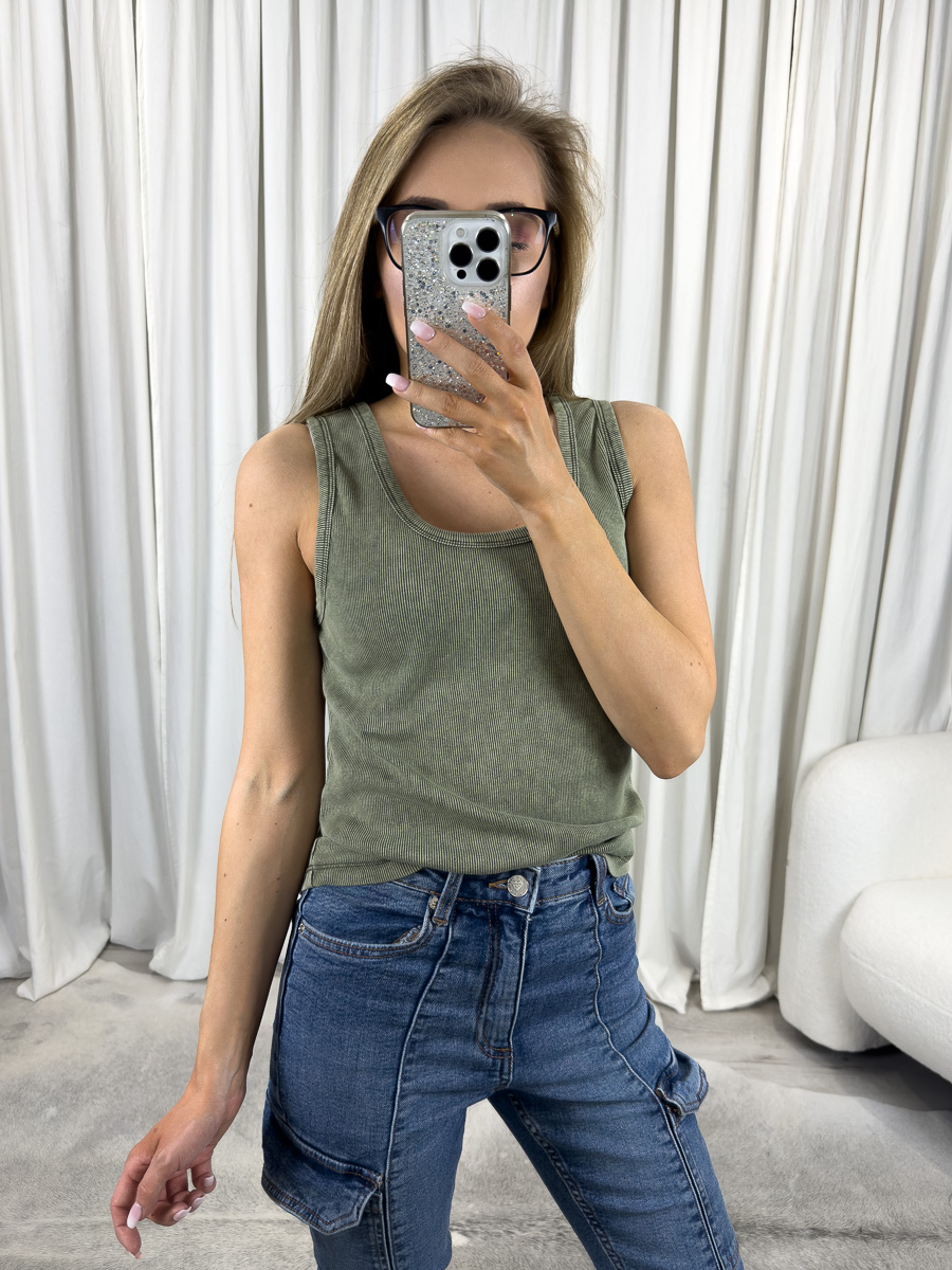 Top bawełniany Basic Wiya to klasyczny, prążkowany top bez rękawów, który idealnie sprawdzi się jako baza wielu codziennych i casualowych stylizacji.